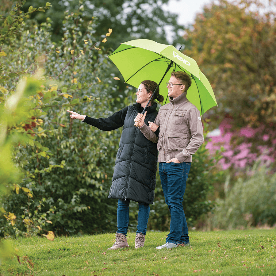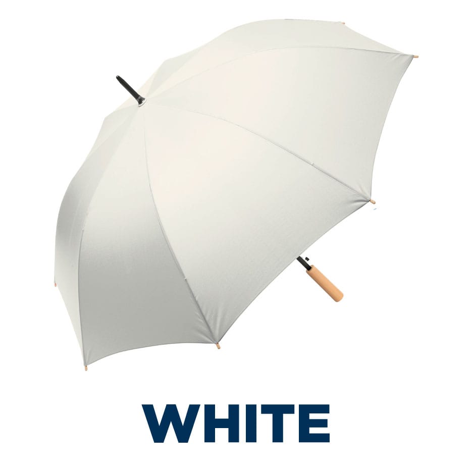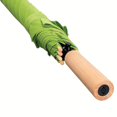 Dare to be more sustainable? This automatic golf umbrella from the ÖkoBrella family makes it easy – and affordable. With the climate and environment in mind, the cover uses the water-saving coloured polyester Pongee waterSAVE® material made from recycled plastics and details made from real wood. It is easy to handle thanks to its convenient automatic function and flexible fibreglass ribs, which cannot be damaged by wind. There really is no reason not to live out your sustainable side.